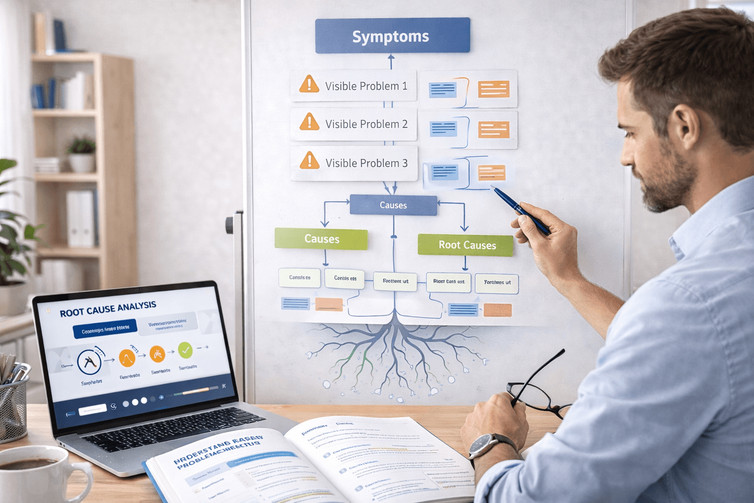 You'll fix things once instead of over and over. Root cause analysis isn't complicated, but almost nobody does it. Once you start asking 'why' five times before jumping to solutions, you'll be amazed at how often the real problem is something completely different from what you assumed.